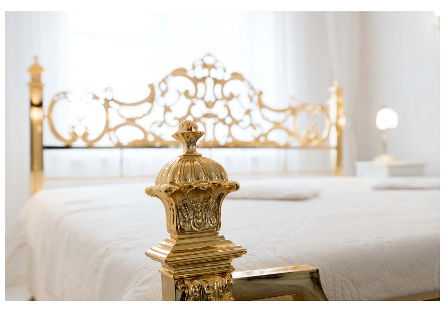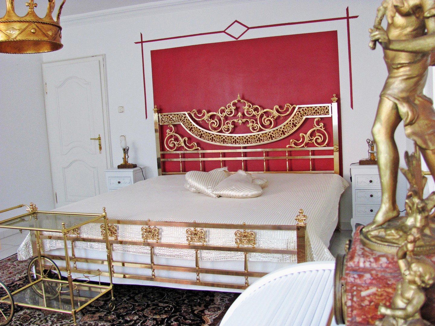 - Bedroom#1, Queen bedroom with real hard gold plated double bed 200x200, dressing table with stool, plus separate closet, crystal wall lights, silk rug