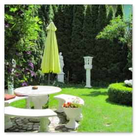 - 50 sqm SOUTH roof terrace with balustrade, double sun lounger 180x230 (in summer), seating area with stone table, 5-light lantern, amphorae, putti